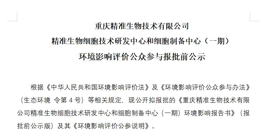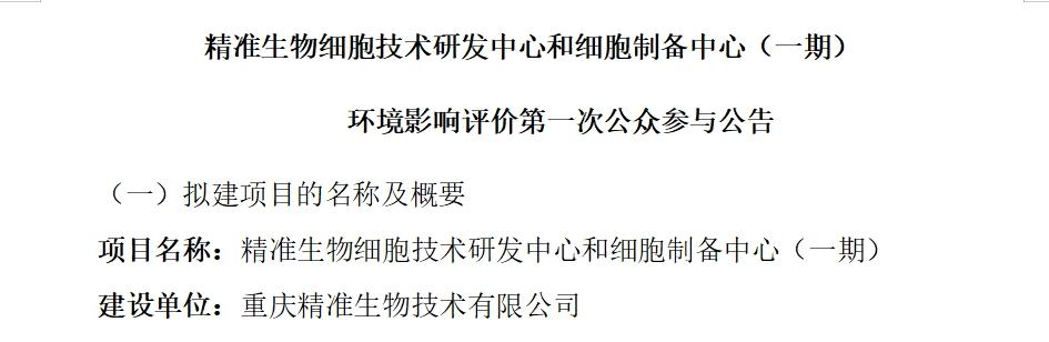 重庆j9.com生物技术有限公司j9.com生物细胞技术研发中心和细胞制备中心(一期)环境影响评价公众参与报批前公示