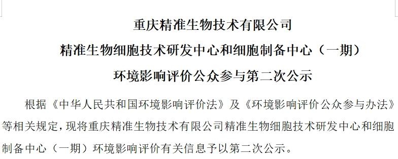 重庆j9.com生物技术有限公司j9.com生物细胞技术研发中心和细胞制备中心(一期)环境影响评价公众参与第二次公示